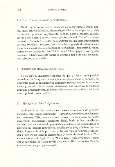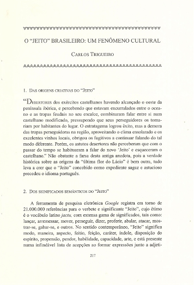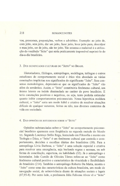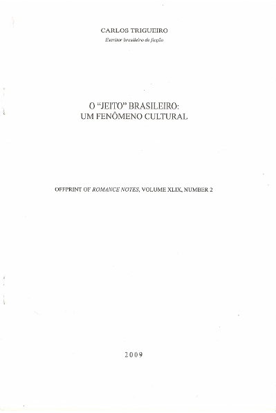 OFFPRINT OF ROMANCE NOTES,VOLUME XLIX,NUMBER2l2009 – O “JEITO” BRASILEIRO: UM FENÔMENO CULTURAL